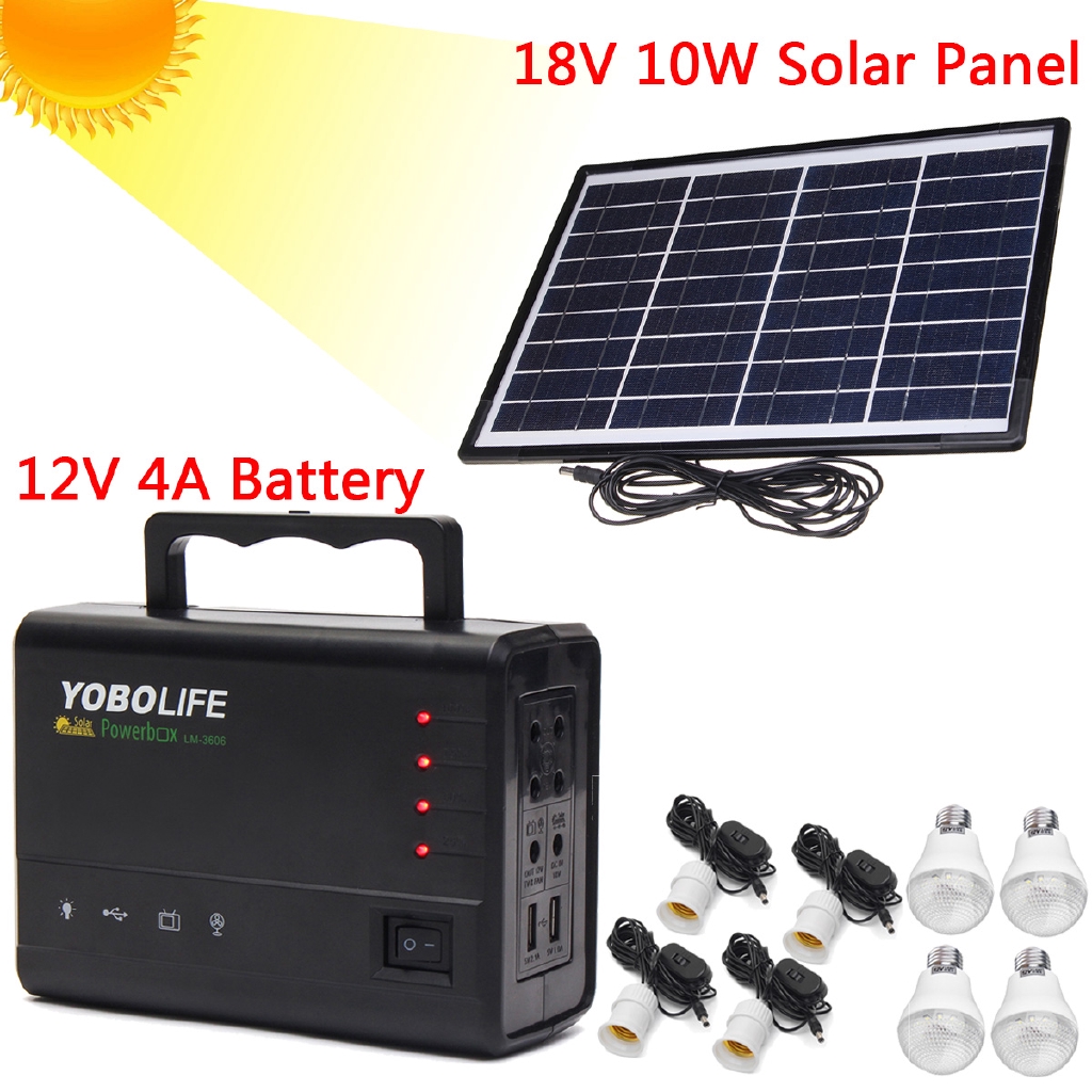 Solar power system portable super bright energy saving lamp 10w 6v solar panel 3 7v with three bulbs radio mp3 outdoor camping portable generator yellow green shell optional rm 321 69 40 rm 192 63.